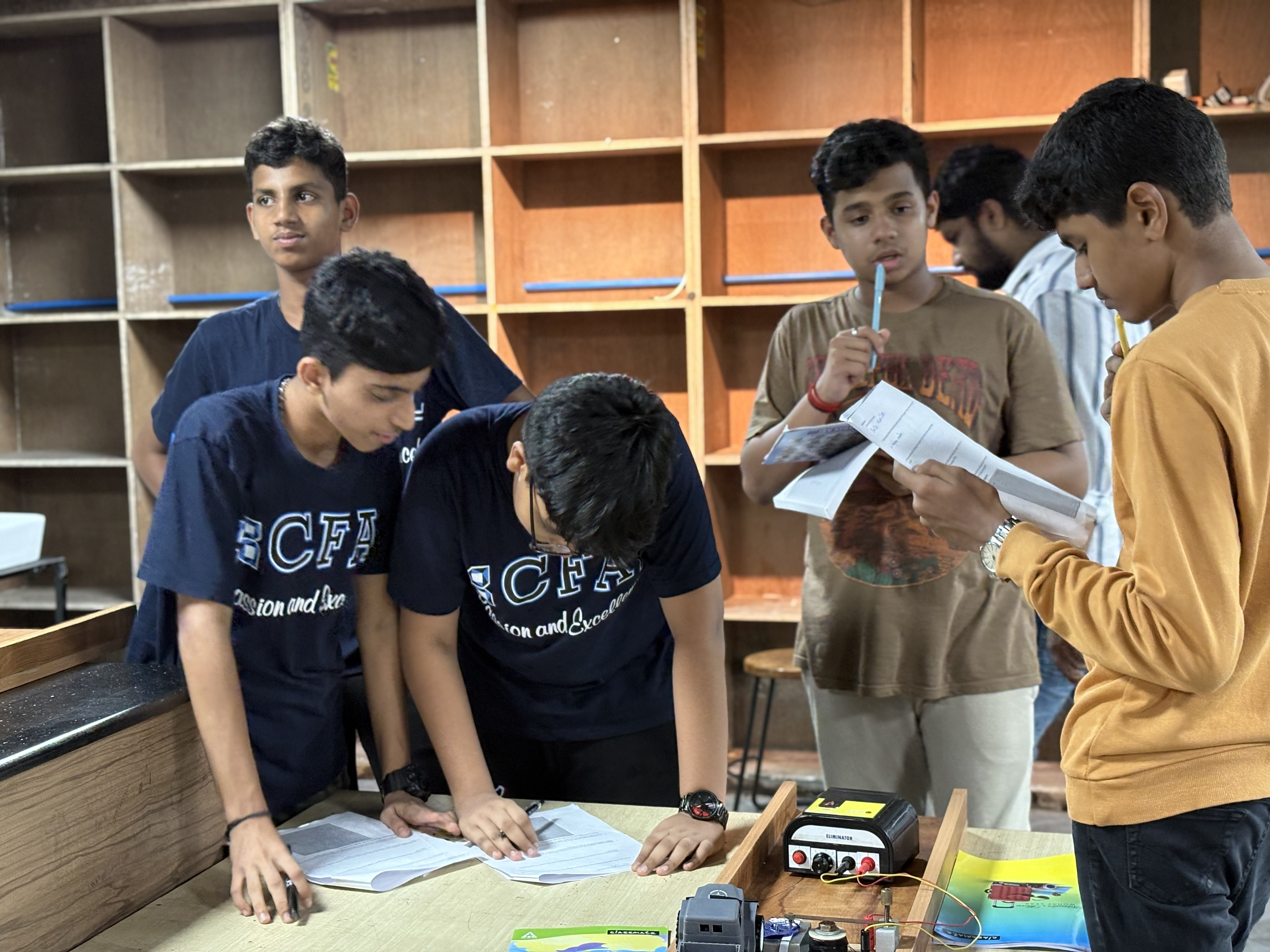 This is experiment-driven science — developed by the Nuffield Foundation in the UK and implemented at CFAL under the guidance of Academic Advisor Mervin. Every concept in Physics, Chemistry, and Biology is experienced before it's explained.